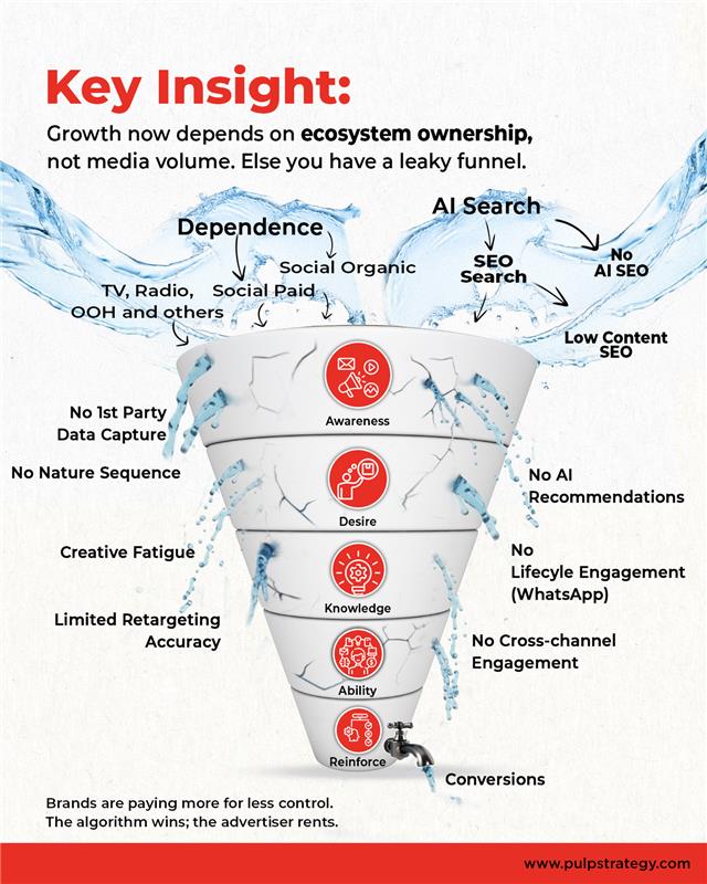 Key Insight: Growth now depends on ecosystem ownership, not media volume. Else you have a leaky funnel