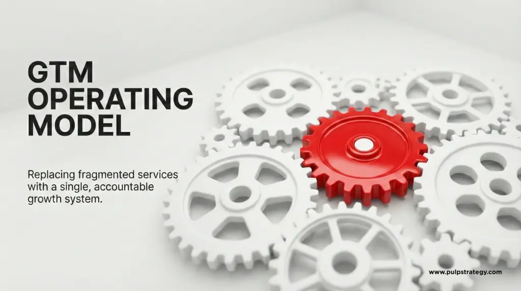 At Pulp Strategy, GTM strategy is not a slide or a launch phase. It is the governing layer that determines every downstream decision. Without GTM clarity, SEO becomes traffic chasing, paid media becomes spend without compounding returns, social media becomes noise, and AI becomes a novelty rather than a leverage point.