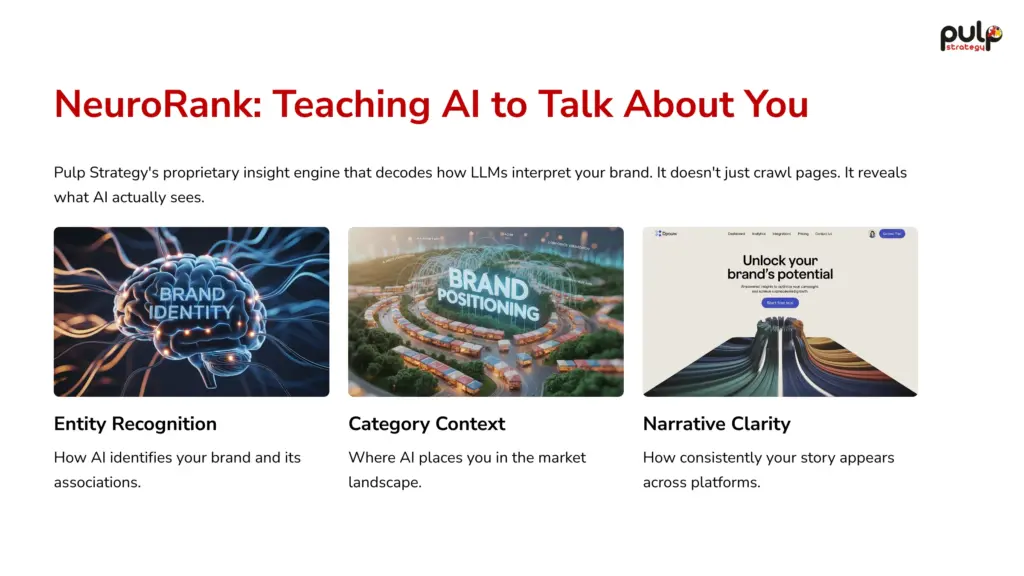 NeuroRank doesn’t just improve your search performance, it teaches AI to talk about you correctly.